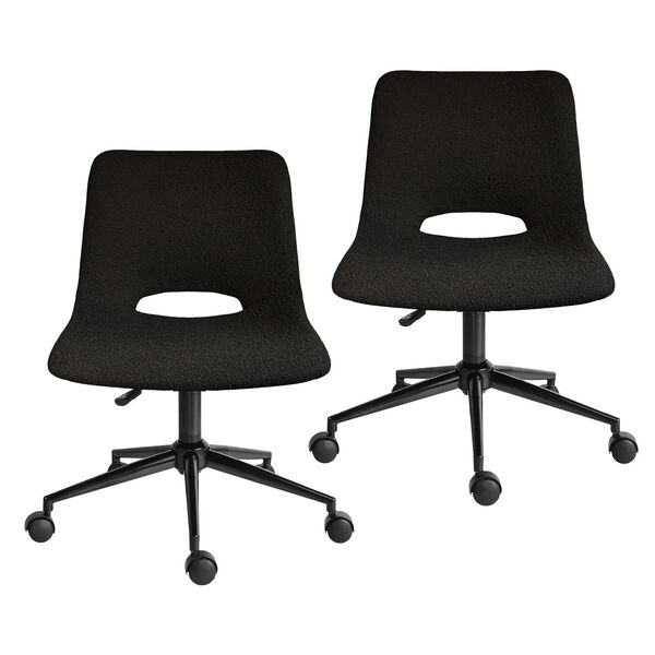 2 set office desk chair - loop yarn fabric home swivel chair cut-out seat halo black
