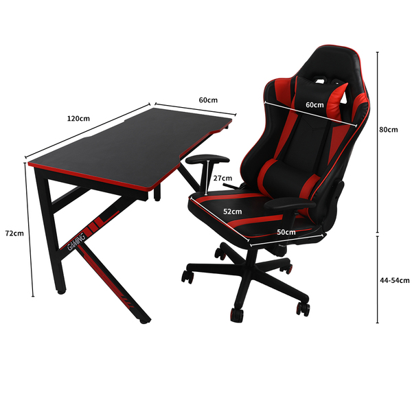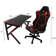 Our Gaming Gear Set features with a spacious tabletop and recliner chair for an ultimate gaming gear experience. Ergonomic contoured desktop allows a closer distance to the gaming screen. With its Z-shaped legs/K-shaped legs, it provides an extremely steady construction which have a 120kg high bearing capacity.