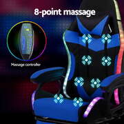 Gaming Office Chair 12 RGB LED Massage Computer Work Seat Footrest Blue