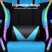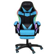 Gaming Office Chair 12 RGB LED Massage Computer Work Seat Footrest Cyan