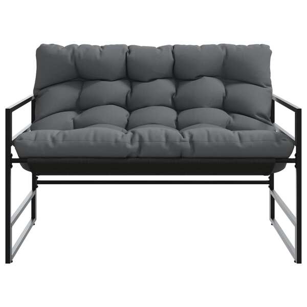 Modern Anthracite Garden Bench with Cushion - 113 cm Steel Design for Outdoor Seating