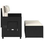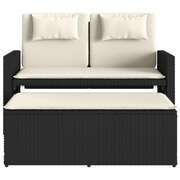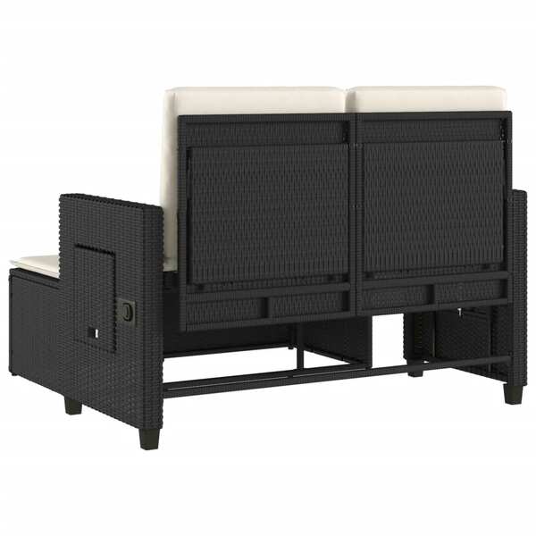 Reclining Garden Bench with Cushions-Black Poly Rattan