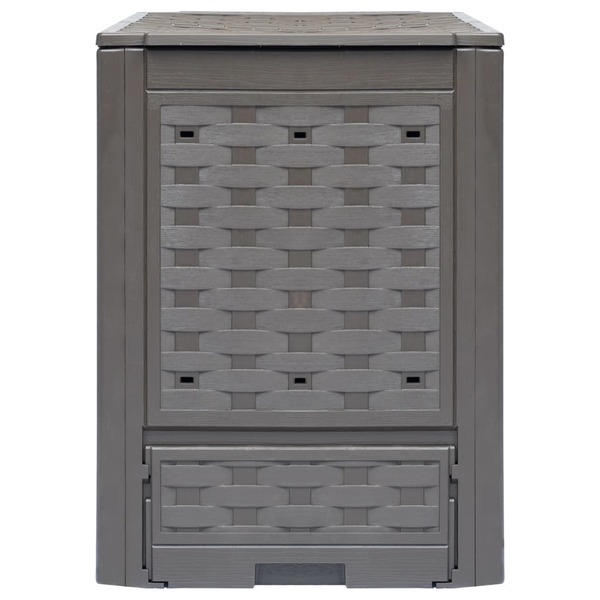 Our garden composters in a rattan look will surely be a perfect option to collect organic waste, including leaves, weeds, and lawn clippings. The compost bins are made of plastic which makes them UV and weather resistant. The units have a lightweight body as well as a neat appearance. They have split lids for optimal irrigation and ventilation. Thanks to ventilation holes in side parts, the waste boxes can exquisitely achieve optimal composting. These square composters will come in very handy when recycling, and meanwhile they will blend naturally into any garden. Delivery includes 2 garden composters.