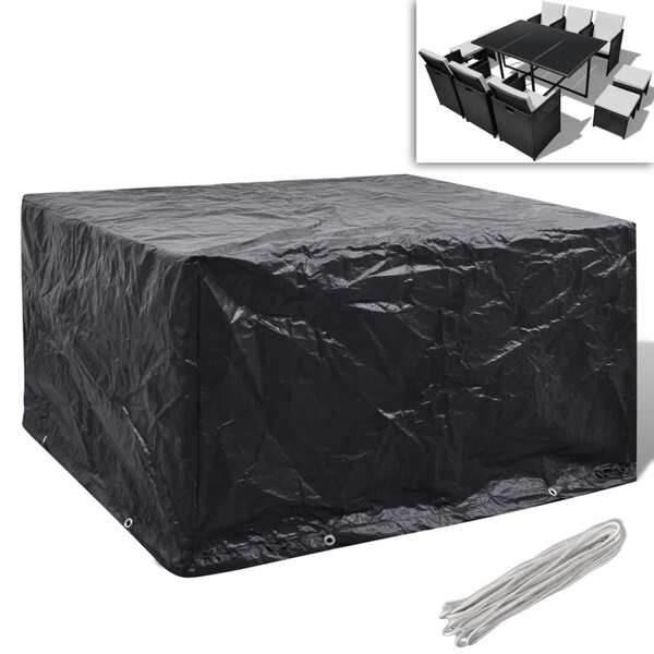 This high-quality garden furniture cover is suitable for protecting your rattan sets from dirt, wind, rain and UV light year round. The cover is made of durable polyethylene, which is water-resistant, UV-resistant, tear-resistant and thus suitable for daily use. It has 8 aluminium eyelets and a fastening rope, so it will fit your set better. The cover is suitable for our 6 Person Rattan Set with SKU 40923 / 40836. You can also use this cover for other furniture sets, as long as it is consistent with the size of your furniture. Note: This product is not 100% waterproof. So, we recommend you to treat it with a waterproof spray for a better waterproof function.