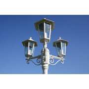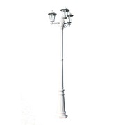 This white garden lamp is made of aluminium and clear glass. It is suitable for lamps with a maximum power of 100 Watts and is 215 cm high. The 3 lanterns not only create a nice atmosphere in your garden, but they also makes it safe to walk along your garden path or driveway when it gets dark.