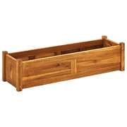 This garden wooden raised bed is extremely durable and beautifully made. It is deep and wide enough to hold a large amount of soil and provide ample space for your plants, vegetables, herbs and flowers. Thanks to its simple rectangular design, it will make a stylish addition to any balcony, deck or patio. Made of high-quality acacia wood, this planter is very sturdy and durable. This box planter is also oil finished to give the wood a warm, rustic colour. The bottom of the planter is slatted, which keeps the soil in and allows excess water to drain. Assembly is easy.