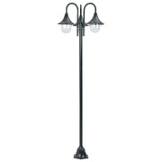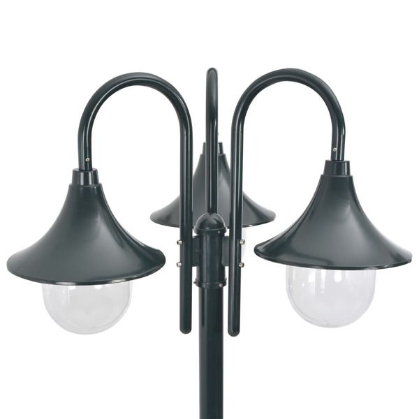 Garden Post Light E27 220 cm Aluminium 3-Lantern Dark Green