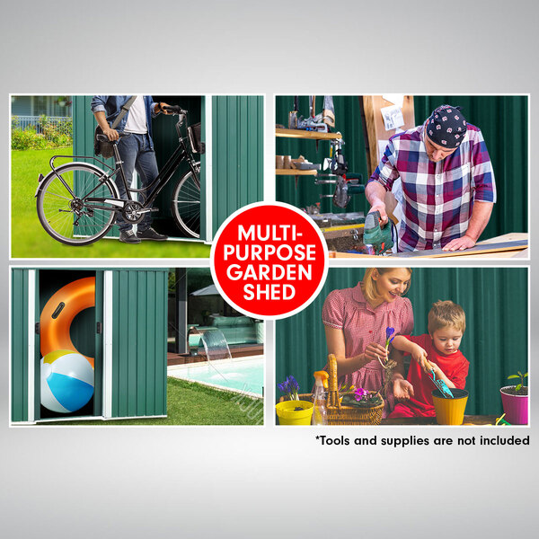 4ft x 8ft Garden Shed with Base Flat Roof Outdoor Storage - Green