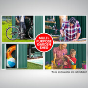 Constructed from galvanized steel and polypropylene this sturdy shed is weather and rust-resistant and designed to withstand the harshest weather elements. It features ventilation vents to let in air and natural light.