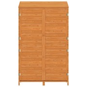 This wooden garden shed makes a great addition to any backyard, lawn, and other outdoor space. Solid fir wood: Solid fir wood is a beautiful natural material. Fir wood doesn't dry out or warp when exposed to moisture.Ample storage space: The outdoor storage shed is ideal for holding various garden tools, lawn care equipment, household items, and other garden accessoriesSturdy frame: The wooden frames ensure sturdiness and stability. The garden shed offers protection from dirt, dust, strong wind and harsh weather. Warning:In order to prevent overturning, this product must be used with the wall attachment device provided.