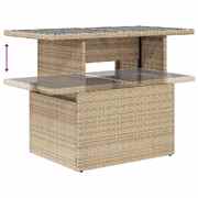 This garden sofa set is the perfect addition to your backyard, terrace, or patio, providing a comfortable and inviting space for chatting with family and friends or simply relaxing and enjoying the outdoors. Durable material: PE rattan, also known as poly rattan, is a strong, low-maintenance synthetic material that looks like natural rattan. It's lightweight, easy to clean, and commonly used for outdoor furniture due to its durability and weather-resistant properties.Storage function with water-resistant bag: Each garden seat features a storage space under the seat, complete with a water-resistant bag for storing cushions, toys, and other items. The inner bag has a top cover and can be securely fastened to the seat with hook-and-loop fasteners for added stability.Adjustable tabletop: The tabletop can be lifted to make the table higher, which transforms the outdoor table from a coffee table to a dining table. It's perfect for having guests over or eating meals outside.Removable and washable cover: These seat cushions feature removable covers for easy washing and maintenance.Robust and stable frame: The powder-coated steel frame is strong, stable, durable, and resistant to corrosion and harsh weather, ensuring long-lasting performance. Good to know:To make sure your outdoor furniture stays beautiful, we recommend protecting it with a waterproof cover.