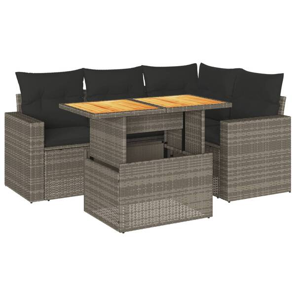 Garden Sofa Set with Cushions Modular Sofa 5 Piece Grey Poly Rattan - Outdoor Relaxation