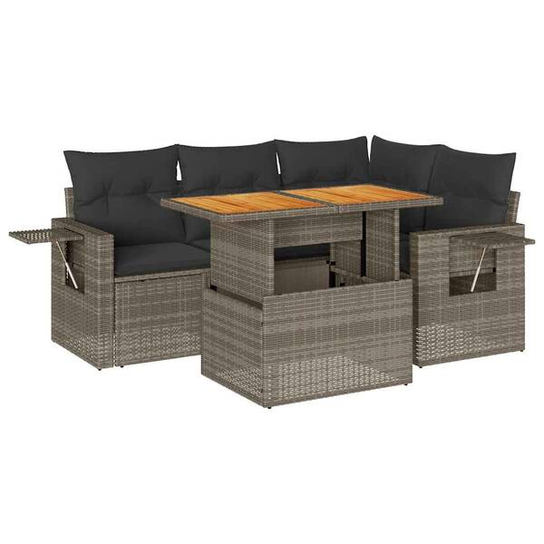 Garden Sofa Set with Cushions Modular Sofa 5 Pcs Grey Poly Rattan - Stylish Comfort