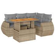 Luxurious Garden Sofa Set with Cushions Modular Sofa 5 Piece Beige Poly Rattan