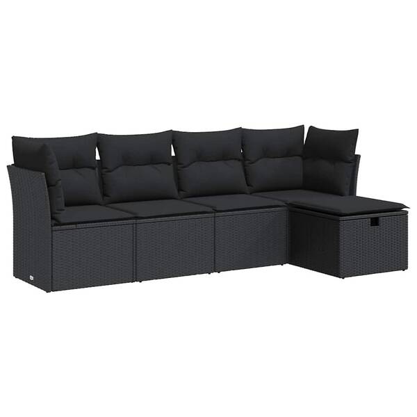 Garden Sofa Set with Cushions Modular Sofa 5 Piece Black Poly Rattan - Stylish & Versatile