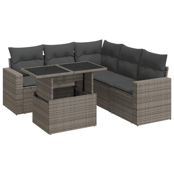 Garden Sofa Set with Cushions Modular Sofa 6 Piece Grey Poly Rattan - Outdoor Relaxation