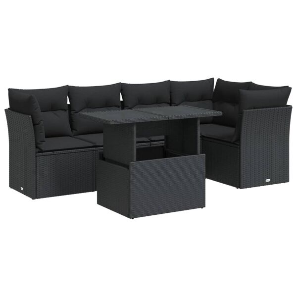 Garden Sofa Set with Cushions Modular Sofa 6 Piece Black Poly Rattan - Comfort & Style