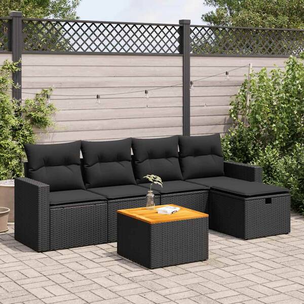 Garden Sofa Set with Cushions Modular Sofa 6 Piece Black Poly Rattan - Relax in Style