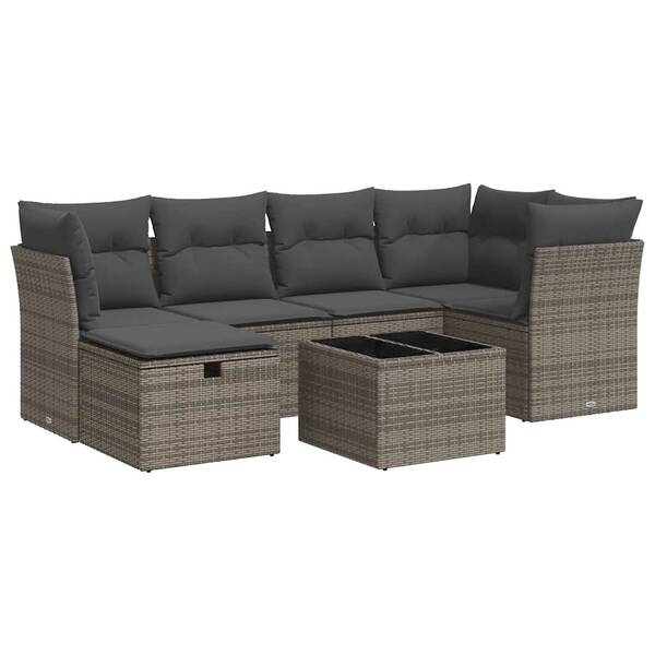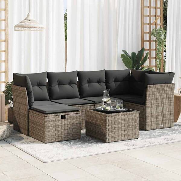 Garden Sofa Set with Cushions Modular Sofa 7 Pcs Grey Poly Rattan - Versatile and Stylish