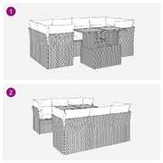 This garden sofa set is the perfect addition to your backyard, terrace, or patio, providing a comfortable and inviting space for chatting with family and friends or simply relaxing and enjoying the outdoors. Durable material: PE rattan, also known as poly rattan, is a strong, low-maintenance synthetic material that looks like natural rattan. It's lightweight, easy to clean, and commonly used for outdoor furniture due to its durability and weather-resistant properties.Storage function with water-resistant bag: The garden furniture features storage space under the seat, complete with a water-resistant bag for storing cushions, toys, and other items. The inner bag can be securely fastened to the outdoor furniture with hook-and-loop fasteners for added stability.Adjustable tabletop: The tabletop can be lifted to make the table higher, which transforms the outdoor table from a coffee table to a dining table. It's perfect for having guests over or eating meals outside.Removable and washable cover: These seat cushions feature removable covers for easy washing and maintenance.Modular design: This outdoor furniture set has a modular design, making it completely flexible and easy to move around, so you can create a customised outdoor furniture arrangement. Good to know:To make sure your outdoor furniture stays beautiful, we recommend protecting it with a waterproof cover.