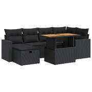 Garden Sofa Set with Cushions Couch 8 Piece Black Poly Rattan Acacia - Elegant & Comfortable