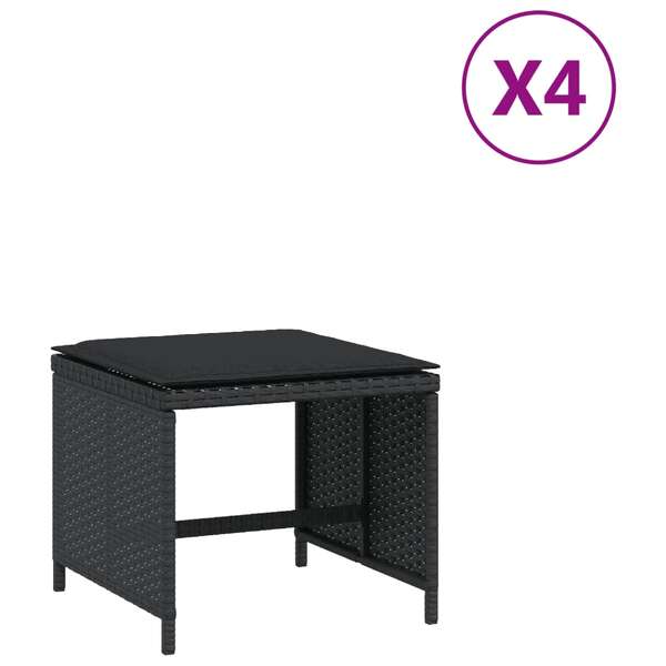 Garden Stools with Cushions 4 pcs Black Poly Rattan