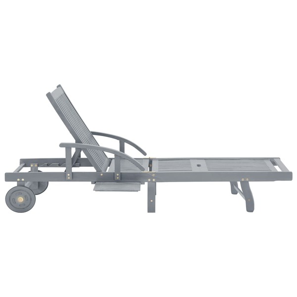 Garden Sun Lounger Grey Solid Acacia Wood