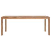 This solid wooden dining table with a water-based finish will add a touch of natural charm to your kitchen, garden or patio. Constructed from extremely durable teak hard wood, this piece of teak furniture has been seasoned, kiln dried and then fine sanded to give a very smooth appearance. Teak wood is known for its exceptional strength and weather resistance, making it far more suitable for garden furniture than any other kind of wood. Teak wood is the perfect choice if you want to purchase a long lasting piece of garden furniture. A beautiful water-based finish is applied to give the wood a warm colour. Thanks to the extra thick tabletop (3 cm) and big legs (5x5 cm), this solid wood table is very durable and can comfortably accommodate your guests. With its water-resistant feature and classic look, you can place this piece anywhere around your sweet home – indoors or outside! Our table is easy to assemble.