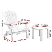 3 Piece Outdoor Adirondack Beach Chair and Table Set - White