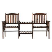 With its modern rustic vibes, the 2-Seater Garden bench is the perfect tete-a-tete set to spend the day with your bestie. Its beautiful natural fir wood construction is meticulously handcrafted to bring out the wood's finest qualities. The finishing is impeccable as is its classic design that will certainly stand the test of time and trends. With two integrated armchairs and an adjoining table, the ensemble features a strong inherent structure with ample weight capacities for armchairs and table. Better still, the table features a double-deck design for extra storage space and a built-in parasol hole to fit an outdoor umbrella if required. Not least, the bench is designed to ensure that your comfort is always forefront in its form and function.