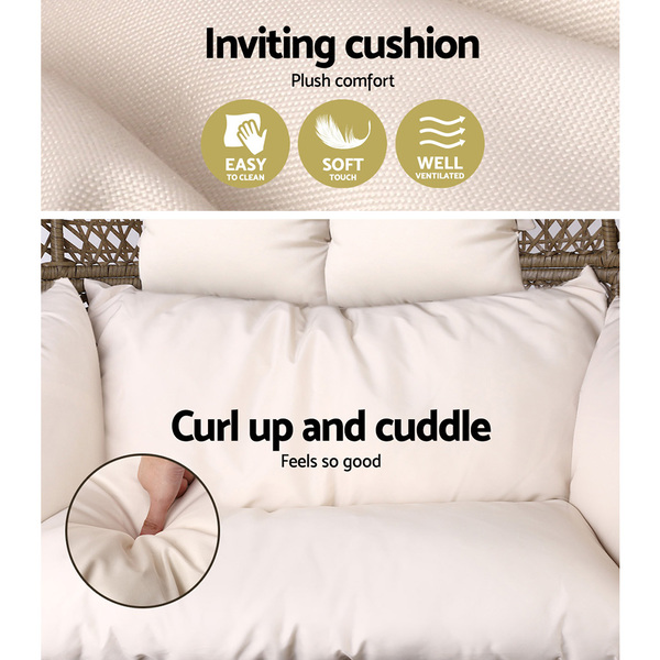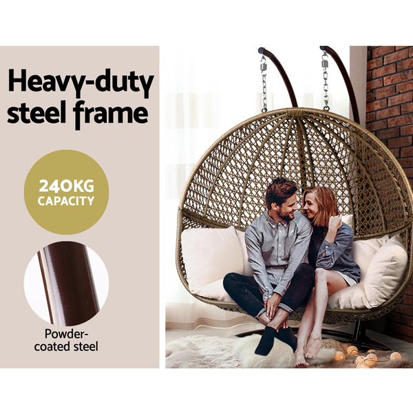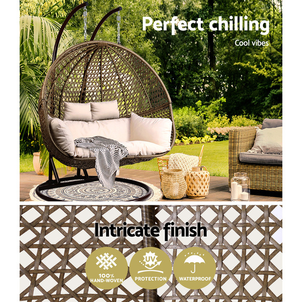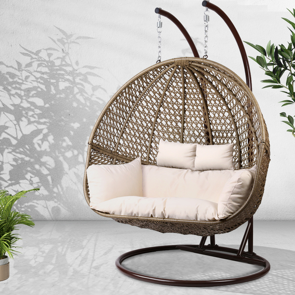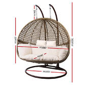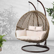 Gardeon Outdoor Double Hanging Swing Chair - Brown