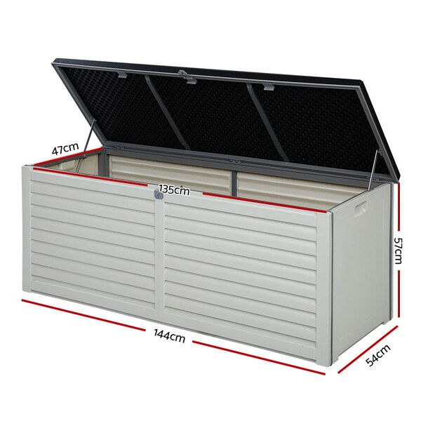 Stylish and modern looking, our Gardeon Outdoor Storage Box is just perfect for storage outdoors and indoors. With a large 390L storage capacity, the box is totally practical in every way. Use it to store anything, from gardening paraphernalia to collectibles to books, clothes or even beddings. Made of durable and weatherproof PP material, the box does not rust and can stand up to robust use with ease. It comes with an aluminium hinge and inner lid stopper for hassle-free use. Plus, the lockable lid also helps to keep things safe and secured. Better still, the storage box can also double up as a bench for casual seating anytime. It is also easy to assemble with no tools required.