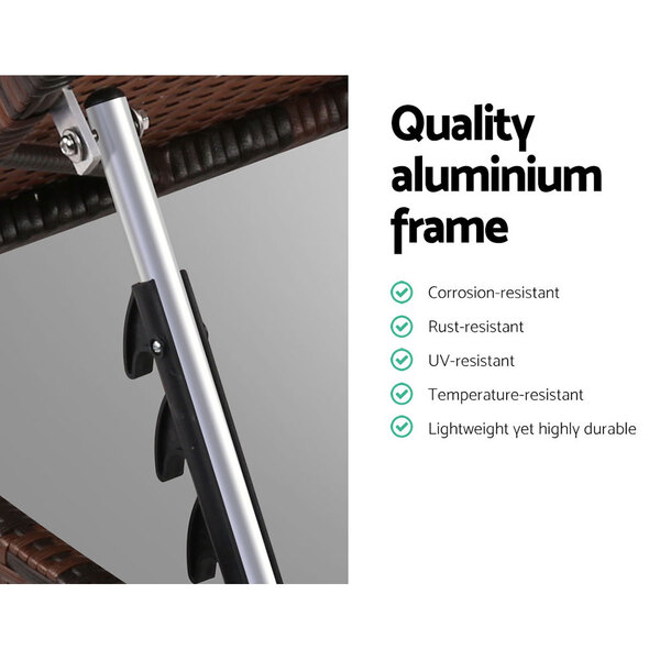 Take relaxation in your outdoor area to a whole new level with our amazing looking Gardeon Bedarra Lounge. Made of UV-resistant PE wicker, the lounge is stylish and chic with its slender profile. Just perfect for use at your balcony, veranda, deck, patio, garden or pool side. The aluminium frame is designed to be strong and durable with great anti-rust properties. Better still, the armrests feature a reversible design that can be adjusted four ways to suit your preferred support while the lounge can also be laid flat for that perfect tan or soothing rest. Not least, the lounge comes with an all-weather pillow for extra comfort with its washable cover easily removed for cleaning when required.