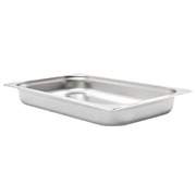 These stackable Gastronorm containers will be great additions to your kitchenware. Made of strong stainless steel, the steam table pan has a solid construction and is easy to clean. The hardwearing material makes it scratch-free and easy to maintain. The food pan features the standard Gastronorm dimensions, thus allowing universal use and a wide range of combinations. Consequently, it fits perfectly in all your professional kitchen cabinets and equipment like bain-marie, chafing dishes and salad bars. The cookware is stackable and can be hidden away to save space, therefore it is very practical and ideal for using in restaurants, hotels, parties, as well as at home. Delivery includes 4 pans.