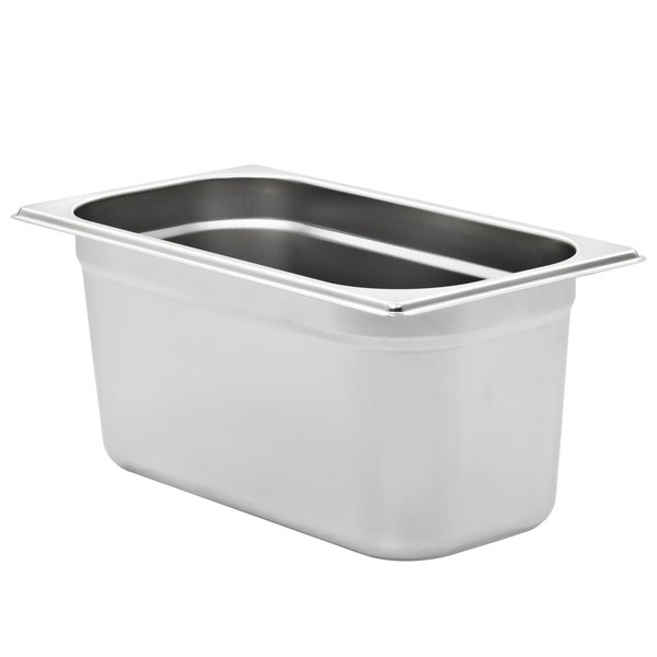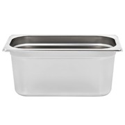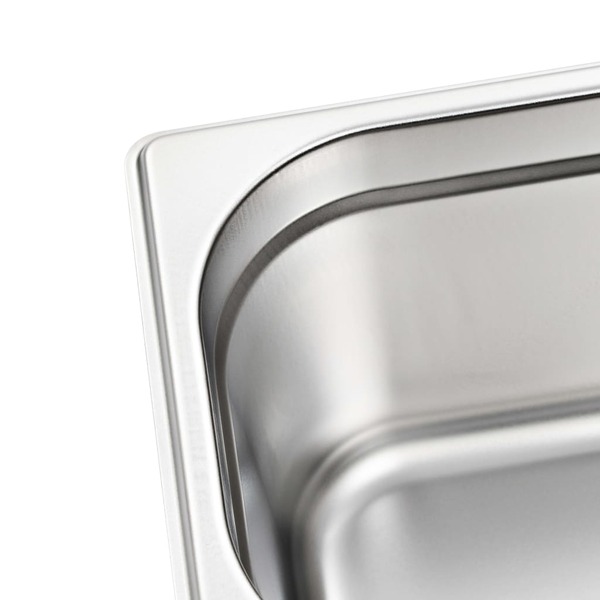 These stackable Gastronorm containers will be great additions to your kitchenware. Made of strong stainless steel, the steam table pan has a solid construction and is easy to clean. The hardwearing material makes it scratch-free and easy to maintain. The food pan features the standard Gastronorm dimensions, thus allowing universal use and a wide range of combinations. Consequently, it fits perfectly in all your professional kitchen cabinets and equipment like bain-marie, chafing dishes and salad bars. The cookware is stackable and can be hidden away to save space, therefore it is very practical and ideal for using in restaurants, hotels, parties, as well as at home. Delivery includes 4 pans.