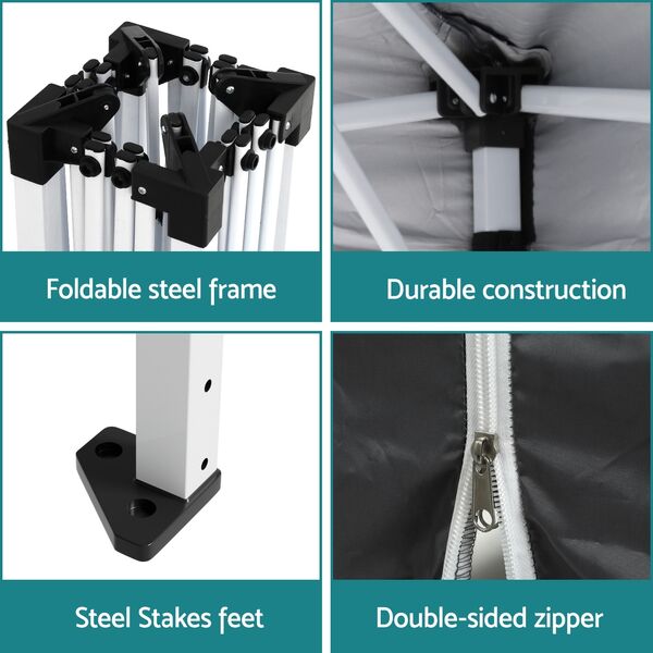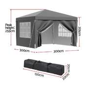 Gazebo 3x3 Pop Up Marquee Folding Tent Wedding Gazebos Camping Outdoor Shade Canopy Gray