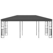 This spacious gazebo will make an elegant addition to your outdoor living space while keeping your family and guests cool and shaded on sunny days. The canopy will keep the sun and rain from spoiling the fun at family gatherings, barbecues, afternoon picnics, and birthday parties. The gazebo has a sturdy steel construction with decorative cross shape details and a polyester roof. The canopy can be easily attached to the steel frame. NOTE: This product should NEVER be used under bad weather, such as strong wind, heavy rain, snow, storm, etc.