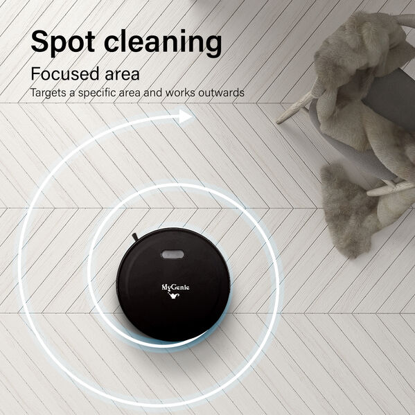 Using the latest robot vacuum technology, the MyGenie Smart Vacuum provides easy-to-use navigation via Wi-Fi. This means you can schedule, clean and monitor your Smart Vacuum all from the convenience of your phone or table. The vacuum features intelligent roaming sensors, dual side brushes and has a powerful suction that all contribute in producing a deeper, more thorough and more sanitising clean along every edge and in every difficult corner, picking up debris and adjusting its power to suit different floor environments. The obstacle-avoidance technology featured on the vacuum, ensures that it will not fall down stairs and can effectively work around obstacles like furniture, so you can trust it to run safely when unsupervised.