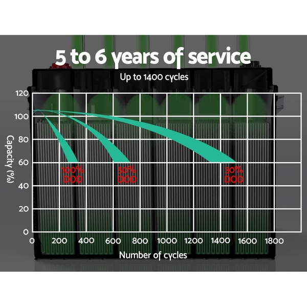 Maximum cycle lIfe: 1400 cycles (@30% DOD)