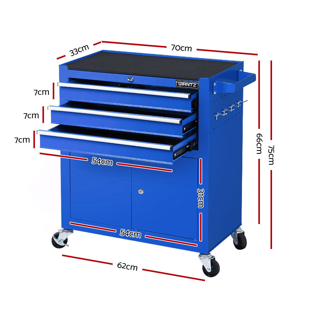 Giantz Tool Box Chest Trolley Cart Kit Cabinet Drawers Garage Toolbox Set Blue