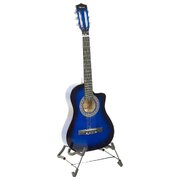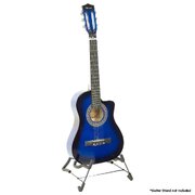 38 Inch Acoustic Guitar Wooden Body Steel String Full Size w/ Stand Blue