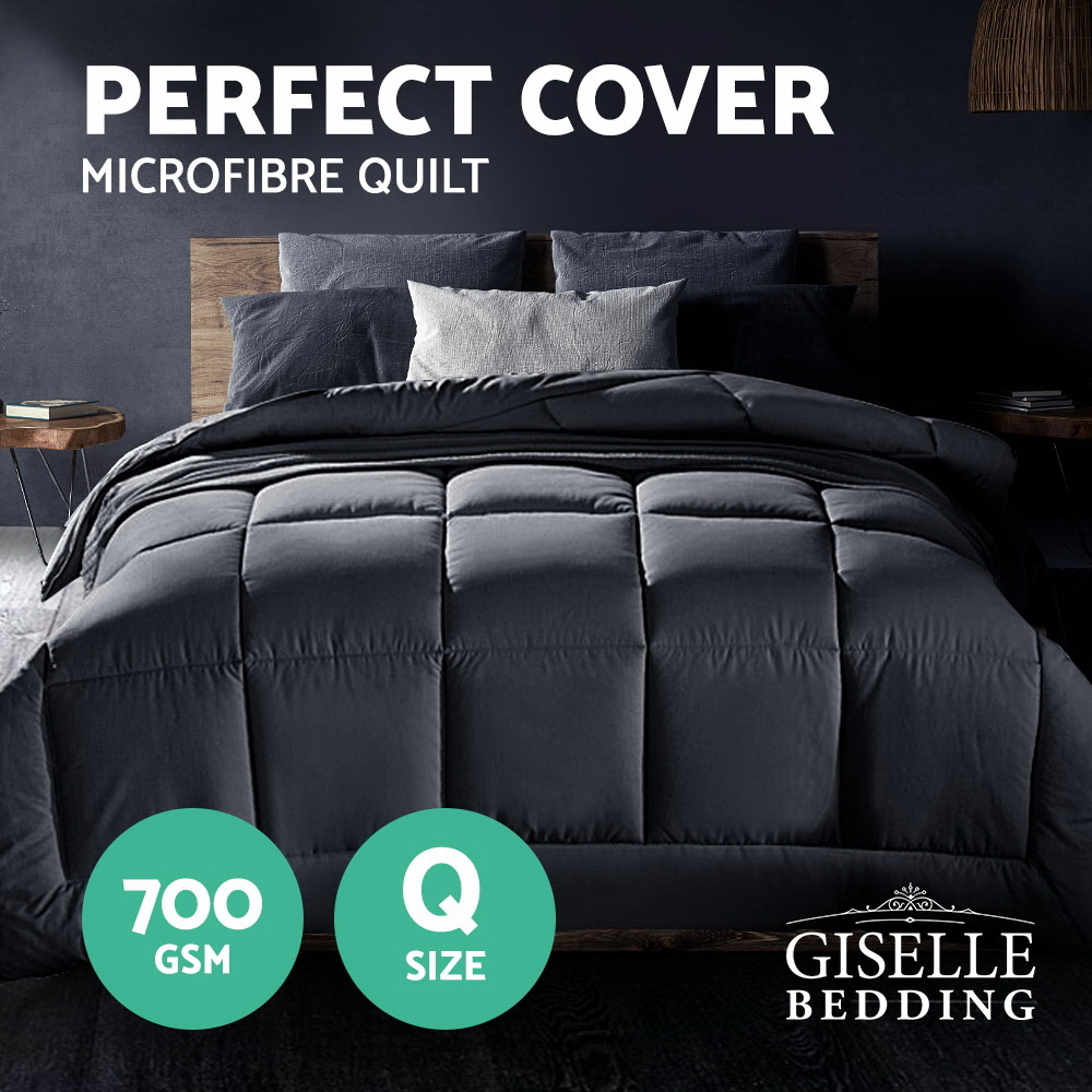 Giselle Bedding 700GSM Microfiber Microfibre Quilt Cover Doona Winter Queen Charcoal