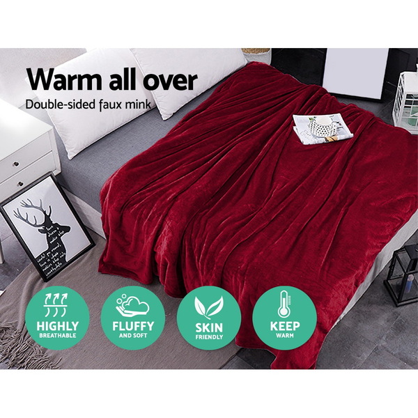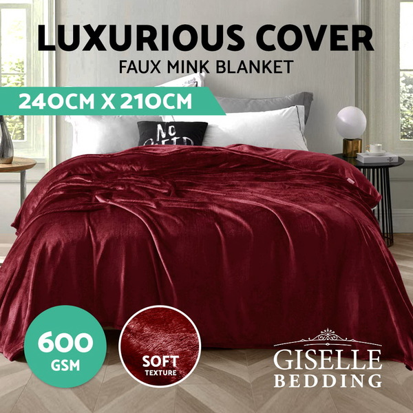 Giselle Bedding Faux Mink Blanket Winter Quilt Doona Fleece Throw Rug Red King