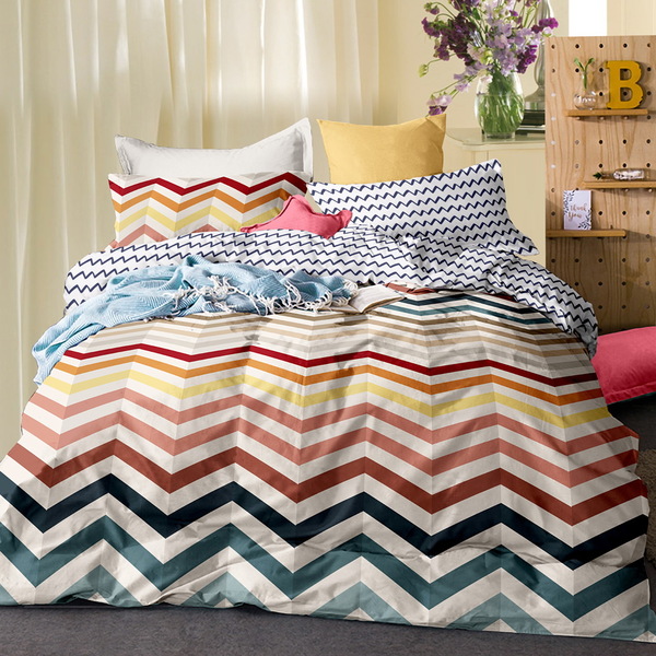 Giselle Bedding Quilt Cover Set Queen Bed Doona Duvet Reversible Sets Wave Pattern Colourful
