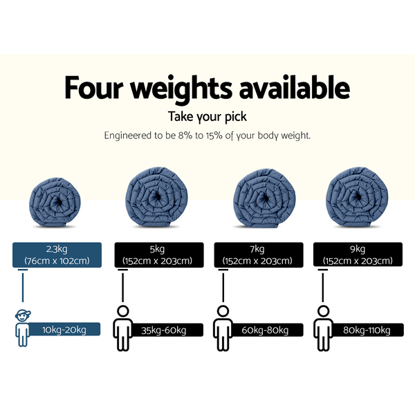 Giselle Cooling Weighted Blanket Kids 2.3KG Gravity Blankets Relax Summer Blue