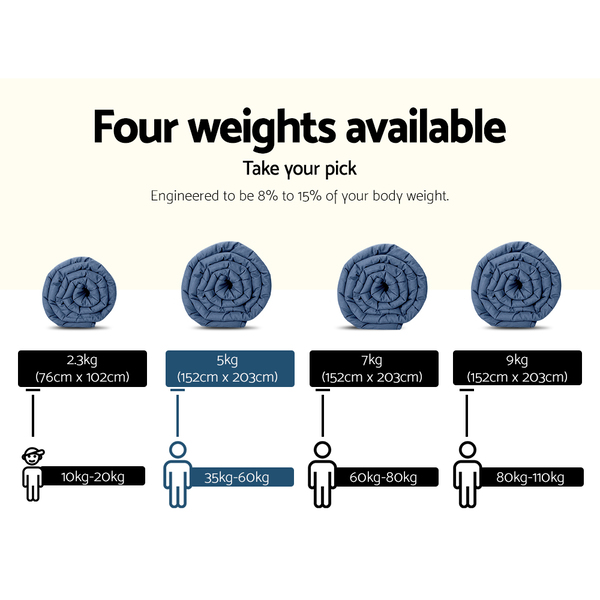 Giselle Weighted Blanket Adult 5KG Gravity Blankets Deep Relax Summer Cooling Blue