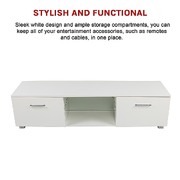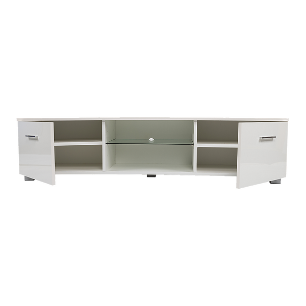 Tv Cabinet Entertainment Unit High Gloss 140Cm White Shelf