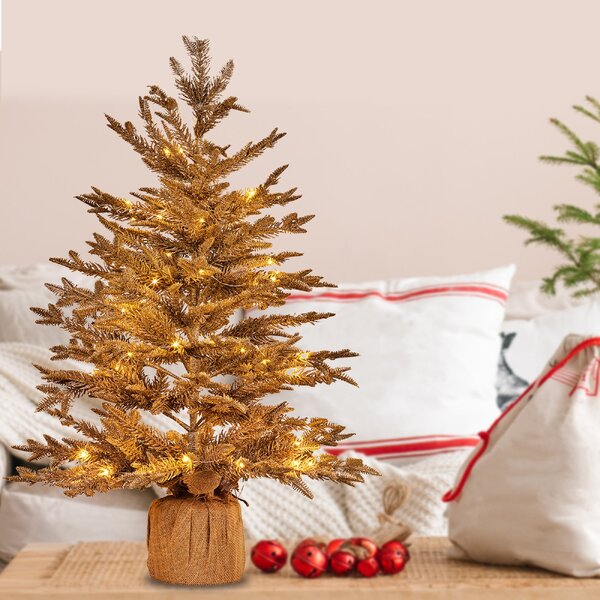 3ft Christmas Tree with Lights - Gold Fir in Hessian Base