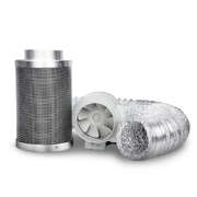 Comprising a 4" Ventilation Fan, 4" Active Carbon Filter and 5m Aluminium Ducting, the Ventilation Kit is designed to provide pure and clean air for your plants at all times. The Fan features high impact polycarbonate blades that deliver ample airflow in the grow tent, through the carbon filters and to cool the light reflector. It also works silently and efficiently. The Carbon Filter is manufactured with a fine mesh for the outer and internal layer and packed with activated charcoal in between. The Filter absorbs all nasty odours and pollens that float through the air or emitted from your plants. Not least, the 5m heavy-duty dual layer Aluminium Ducting is fire-resistant and allows for easy connection without any special tools.