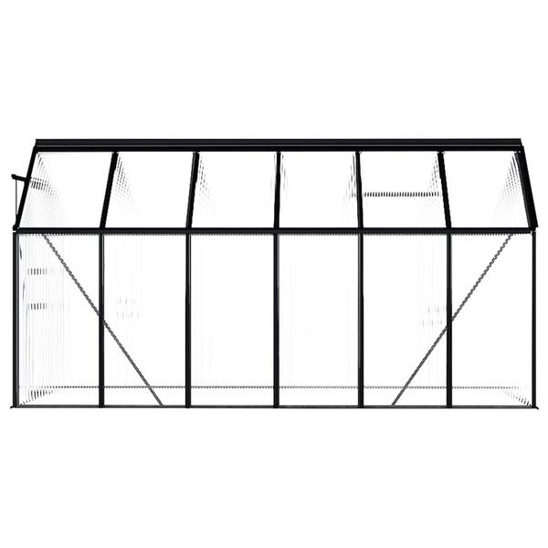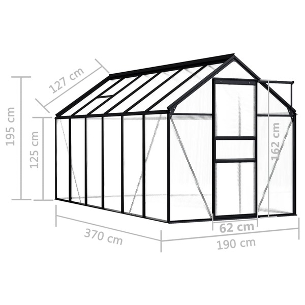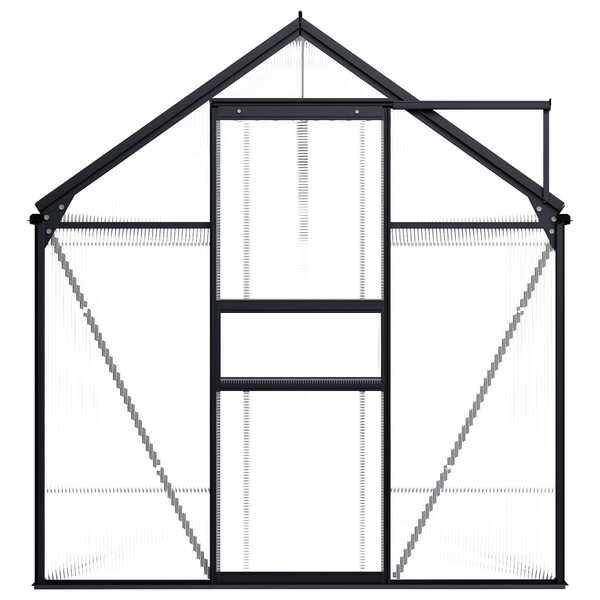 This spacious greenhouse has a total surface of 7.03 m². It can accommodate a considerable number of plants, and will be a great solution for protecting your plants from the cold weather. Made of polycarbonate panels, this solid greenhouse is UV resistant and thermally insulated. The greenhouse has a sturdy and maintenance-free aluminum construction for extra stability. The gutter system effectively allows water drainage, and the roof vent ensures optimal ventilation on hot days. Roof panels are fixed with metal clips, ensuring its durability and long-term use. Our greenhouse is easy to assemble. Please note the foundation is not included; and the roof of our greenhouse cannot withstand heavy snowfall. Warning: The greenhouse is not a construction building or conservatory, intended for leisure purposes. It is an impermanent standalone agricultural installation intended for hobby gardening only.